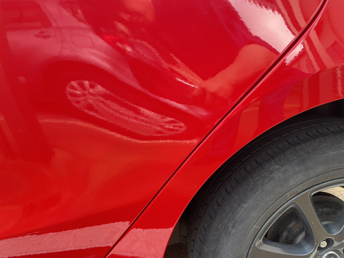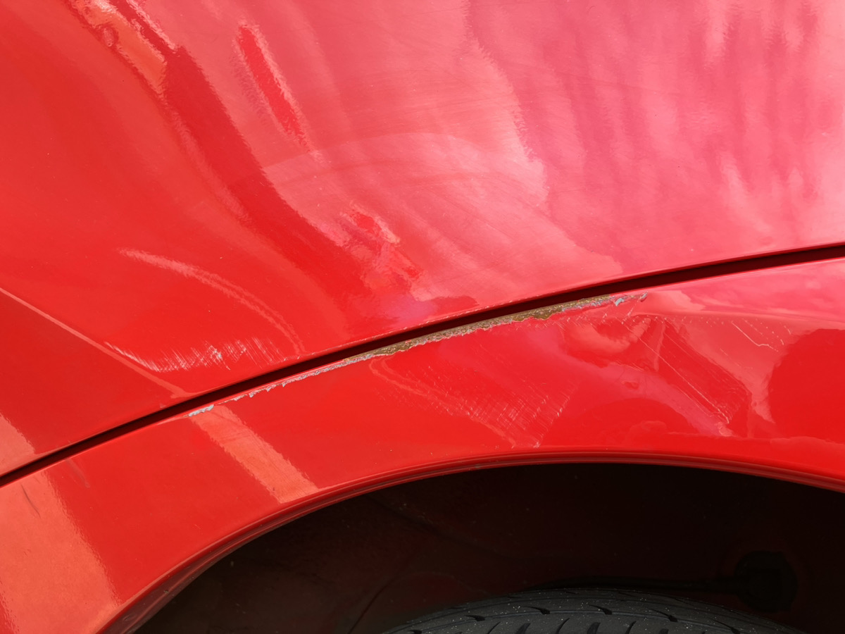 左リヤドアと左リヤフェンダの擦り傷になります。